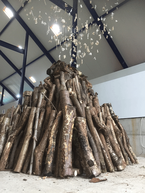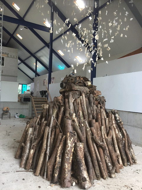 Combined with the porcelain ‘smoke’ and the symbolic bonfire, representative of witch burning throughout history and ongoing to this day, coming from within the heap of firewood, are men’s voices . Angry, bitter derogatory voices extolling violence against women, quotes taken from various actual incel-group internet-sites – voices that are fanning the smouldering fires of contemporary misogyny.
